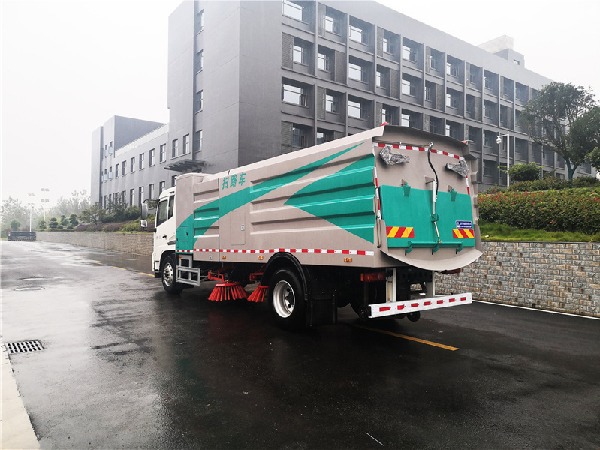 扫路车利用倾斜扫刷将垃圾扫**吸盘前面,在风机产生的负压作业下,风流在闭合的回路中将垃圾吸入垃圾箱储存,整个作业过程均是物理原理,不会产生化学废料或垃圾外泄对环境的二次污染。