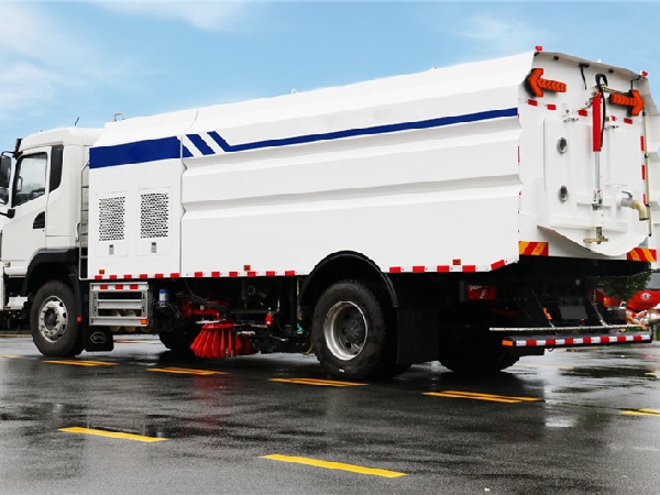 天锦洗扫车利用高压水流及倾斜扫刷将垃圾扫**吸盘前面,在风机产生的负压作业下,风流在闭合的回路中将垃圾吸入垃圾箱储存,整个作业过程均是物理原理,不会产生化学废料或垃圾外泄对环境的二次污染,同时,后喷雾的降尘有效的降低了空气中的粉尘浓度,解决粉尘污染问题。洗扫洁净度高,该车型功能齐全能解决不同路面环境的作业,一次作业洗扫效率达98%以上,**冲洗功能、洗扫功能、路沿清洗功能、后喷雾功能、低压冲洗功能以及采用的中置吸盘+左右喷杆清洗方式,可对页面、勾缝、弯道处、路沿上等处的灰尘、垃圾均能有效的处理干净,确保环境整洁。