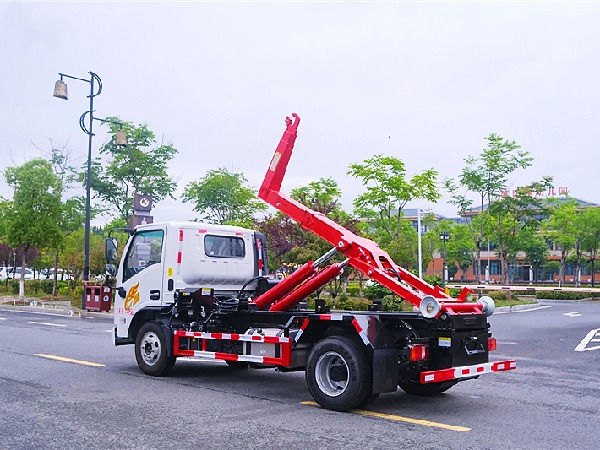 ◇上装配置:强度合金钢一体式主勾臂,加强型副梁,铸钢尾托轮,手自一体室内外液压操控,加强型上装,伸缩臂,油缸加粗,加装液压支腿,搭配建筑垃圾箱使用,**提升能力8000Kg。 液压完成上箱+下箱+锁紧+自卸等作业,实现一车配多箱的循环转运。