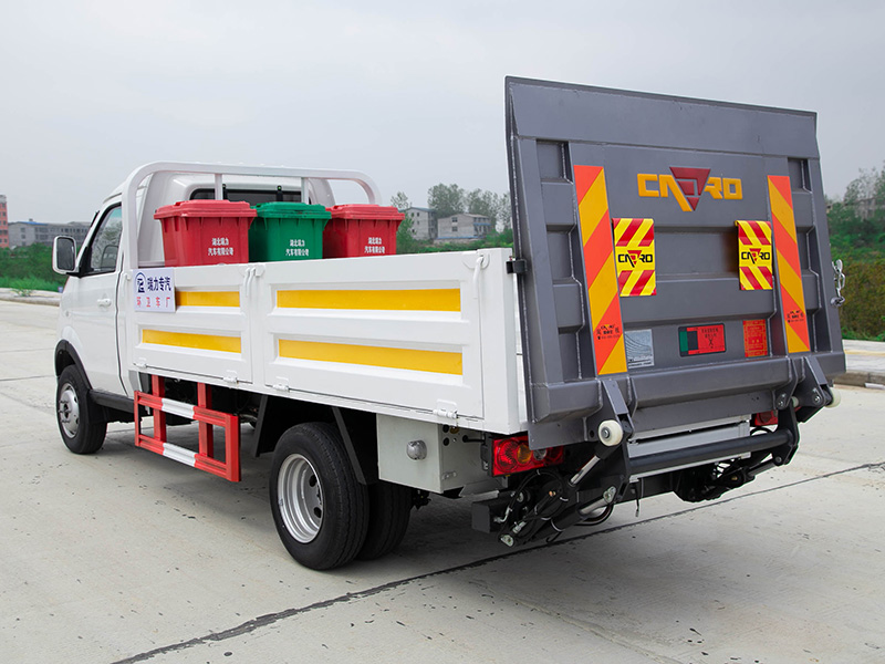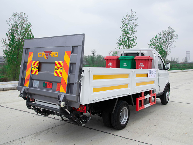 上装配置: 箱体采用优质碳钢板,边二底三,尺寸严格按照公告尺寸制作,尾板采用凯卓立液压升降尾板,全国联保。**举伸能力500KG,一次能装卸多个垃圾桶,设有固定式和有线式两种电控操作方式,尾板电源设置**开关;在升降尾板上安装安全**示小旗、反光**示板、安全链条;电控操作面板设置全车紧急停止按钮。
