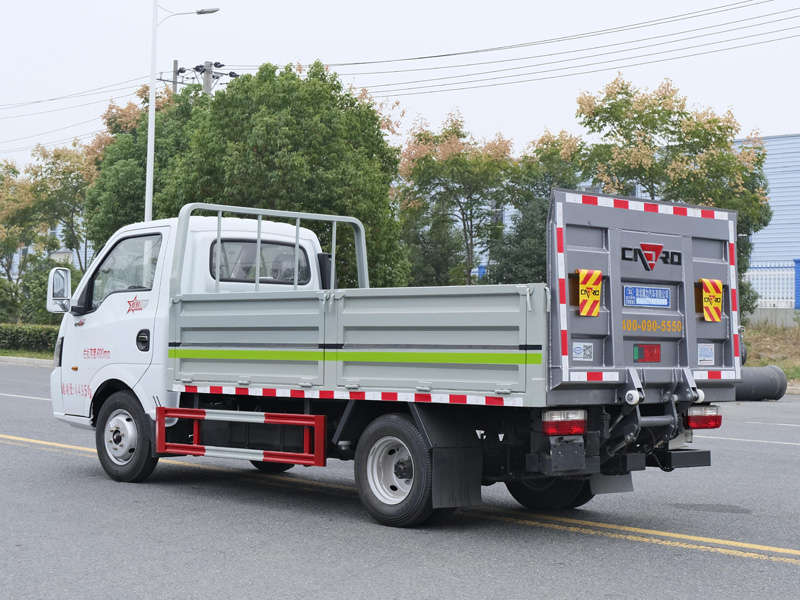 上装配置: 箱体采用优质碳钢板,边二底三,尺寸严格按照公告尺寸制作,尾板采用凯卓立液压升降尾板,全国联保。**举伸能力500KG,一次能装卸多个垃圾桶,设有固定式和有线式两种电控操作方式,尾板电源设置**开关;在升降尾板上安装安全**示小旗、反光**示板、安全链条;电控操作面板设置全车紧急停止按钮。