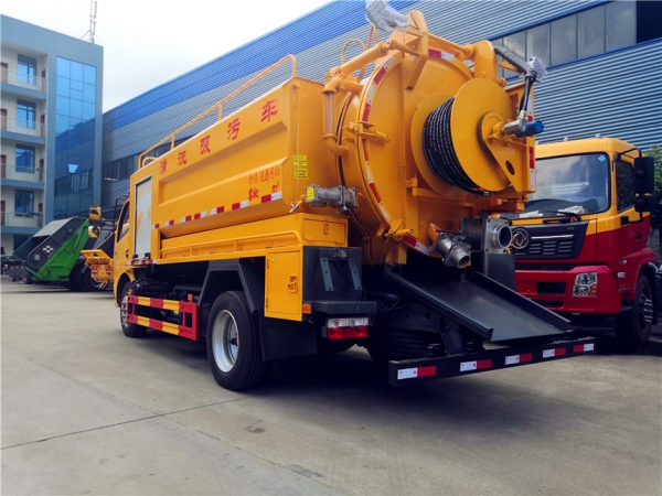 清洗部分:3方水箱,采用4mmQ235优质碳钢板,水箱两侧消防接口进水,工具箱一个。采用德国品浮高压泵215升流量,22兆帕,配60米内径19#高压管,10个大小不同喷头一套, 后置式清洗卷盘,带淋管装置(用于淋洗高压管疏通管道过后上面残留的污物),带气吹水功能(用于吹出每次高压管工作完以后内部残留的水渍,防止天冷结冰影响下次使用)