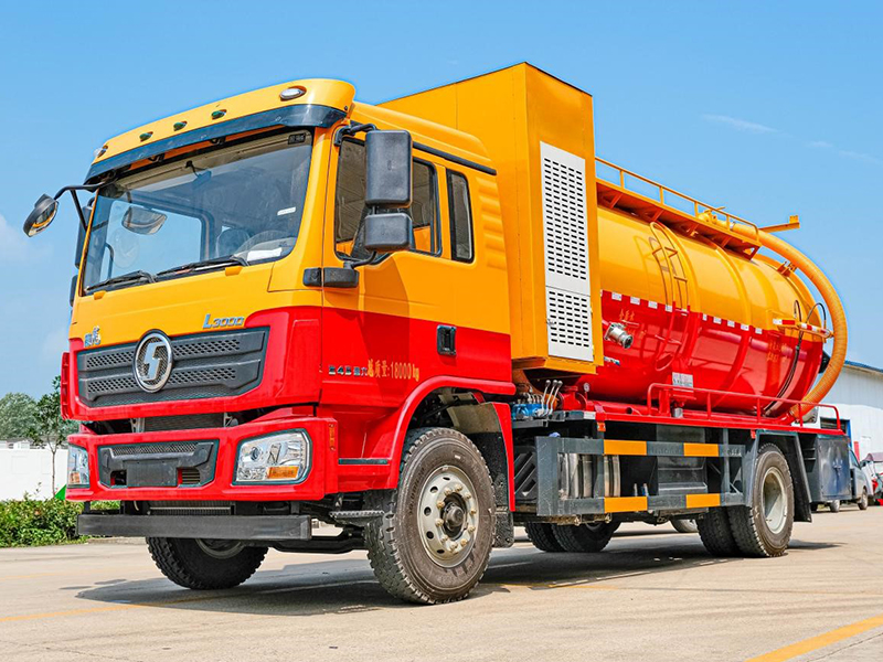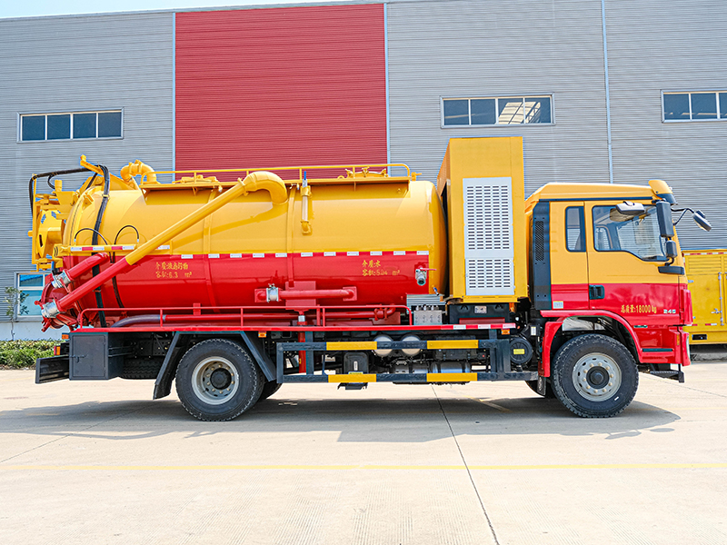 . 吸污车专用部分:由取力器、传动轴、真空吸污泵、压力罐体、液压部分,管网系统、真空压力表、视粪窗、洗手装置等组成,随车配置大功率真空吸污泵和优质液压系统,罐体封头一次压铸成型、罐体可后开、双顶自卸。罐内污物可通过后盖直接倾倒,具有真空度高(比吸粪车的吸力更大)、吨位大、效率高、用途更广泛的特点。