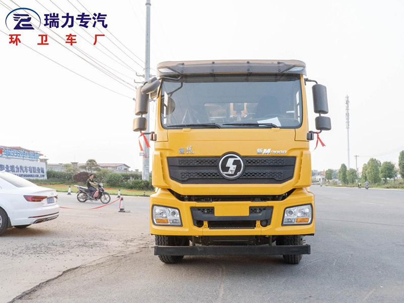 ◇底盘配置:德龙M3000标准驾驶室,潍柴WP7.300E61国六发动机(其他发动机可根据公告自由选择),陕齿8档变速箱,QCD45取力器,5.5吨前桥,11.5吨后桥,11.00R20轮胎,4375+1400mm轴距,300L铝合金油箱,带原厂空调,ABS,行车记录仪,中控锁带摇控器。
